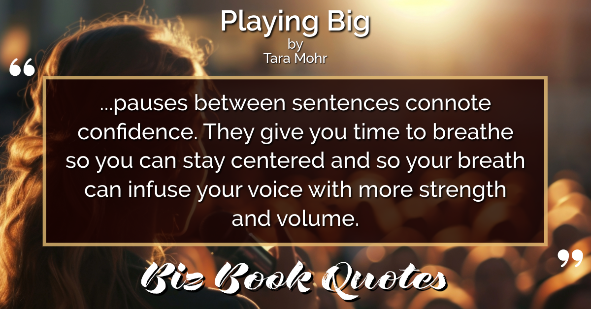 …pauses between sentences connote confidence. They give you time to breathe so you can stay centered and so your breath can infuse your voice with more strength and volume.