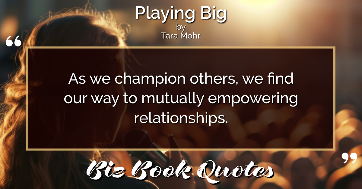 Categories Champions Quotes: 4 Quote(s) Found Quote Page Number Champions think big. Champions work in a big-time way. Champions are focused. Champions are disciplined. 039 Winning comes with a responsibility. Champions rise to that responsibility. 040 The most important quality in a champion is simply this: They can see the future that hasn’t arrived yet. 232 As we champion others, we find our way to mutually empowering relationships. 233