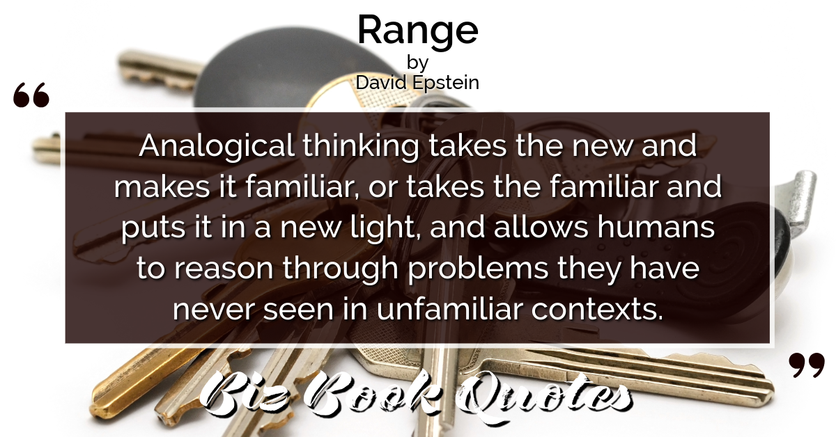 Analogical thinking takes the new and makes it familiar, or takes the familiar and puts it in a new light, and allows humans to reason through problems they have never seen in unfamiliar contexts.