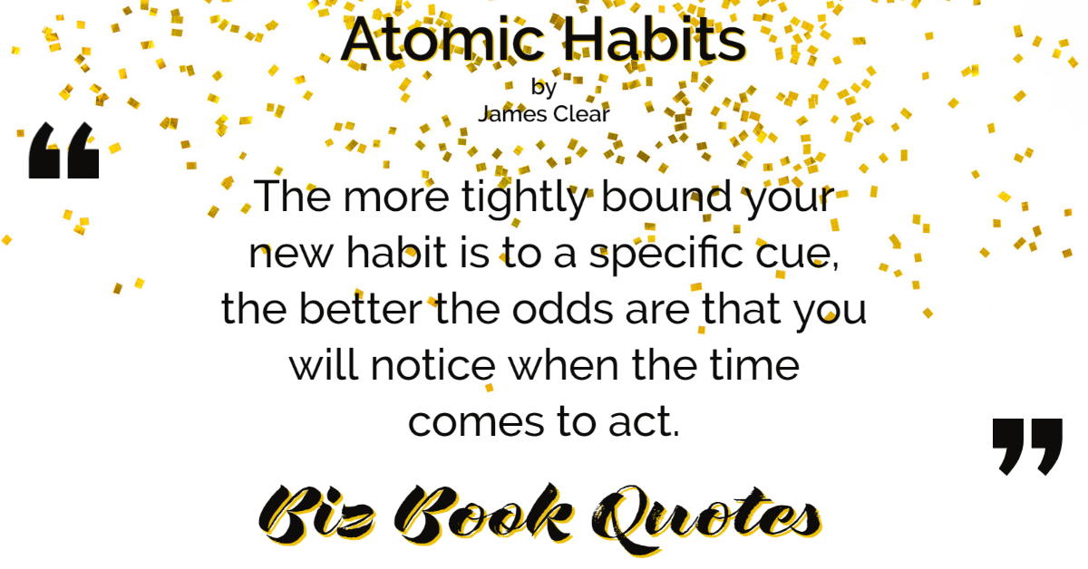 The more tightly bound your new habit is to a specific cue, the better the odds are that you will notice when the time comes to act.