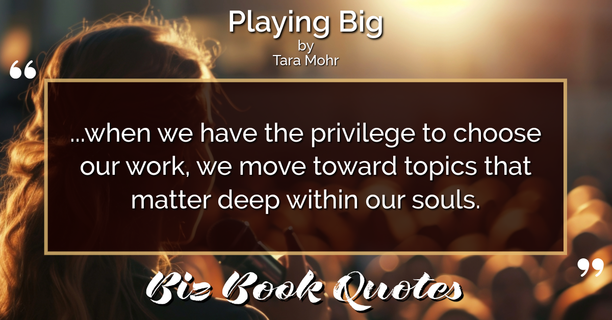 …when we have the privilege to choose our work, we move toward topics that matter deep within our souls.