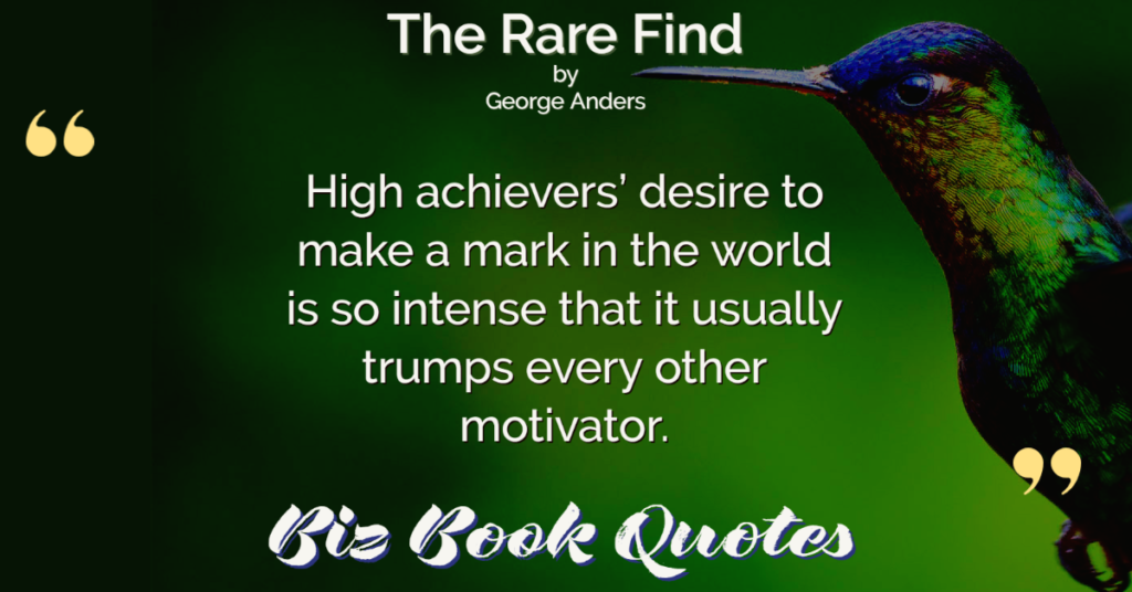 Quotes Quote: High achievers’ desire to make a mark in the world is so intense that it usually trumps every other motivator.