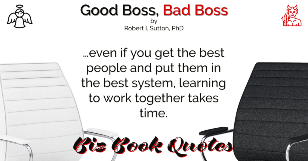 Quotes Quote: …even if you get the best people and put them in the best system, learning to work together takes time.