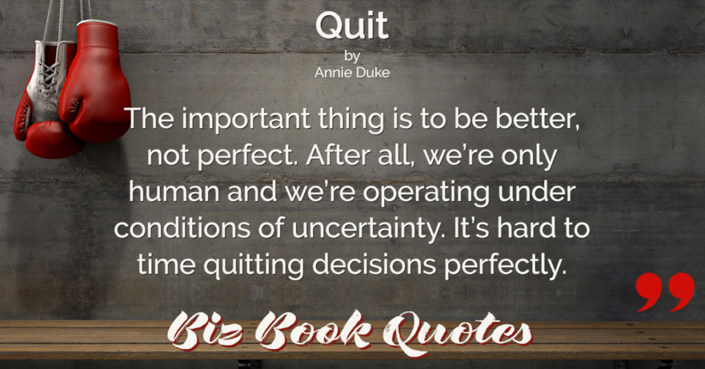 Quotes Quote: The important thing is to be better, not perfect. After all, we’re only human and we’re operating under conditions of uncertainty. It’s hard to time quitting decisions perfectly.