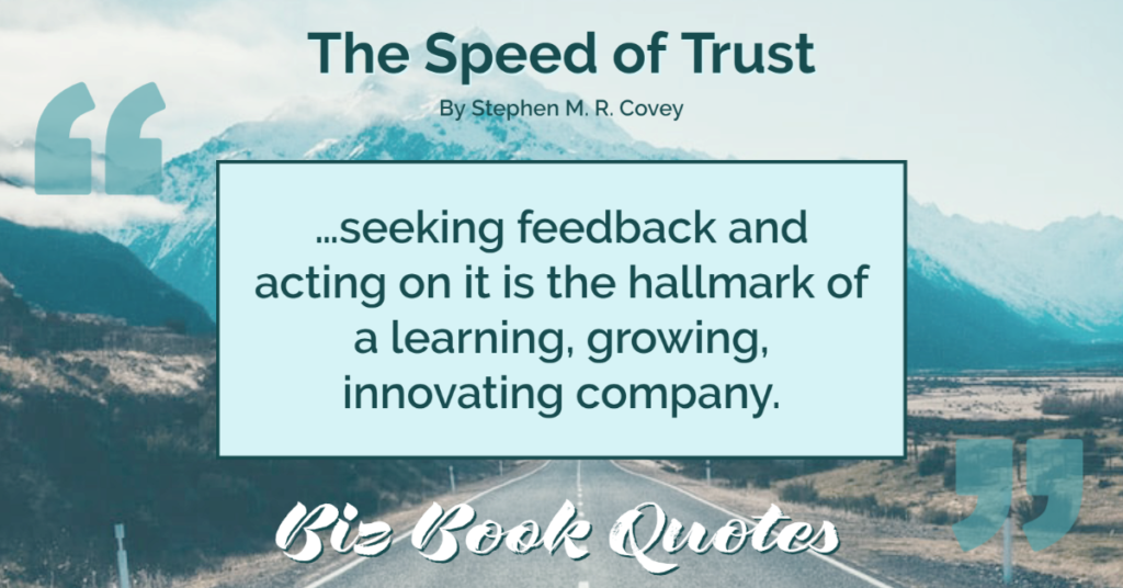 Quotes Quote: …seeking feedback and acting on it is the hallmark of a learning, growing, innovating company.