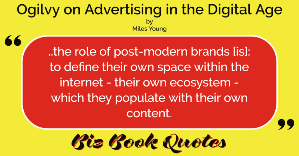 Quotes Quote: ..the role of post-modern brands [is]: to define their own space within the internet – their own ecosystem – which they populate with their own content.