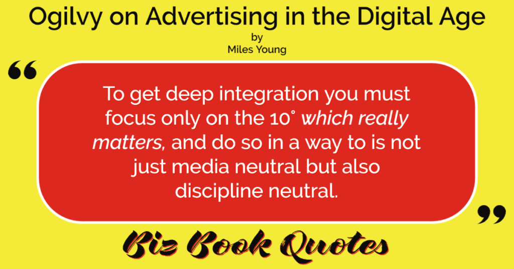 Quotes Quote: To get deep integration you must focus only on the 10° which really matters, and do so in a way to is not just media neutral but also discipline neutral.