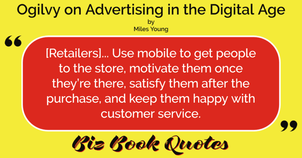 Quotes Quote: [Retailers]… Use mobile to get people to the store, motivate them once they’re there, satisfy them after the purchase, and keep them happy with customer service.