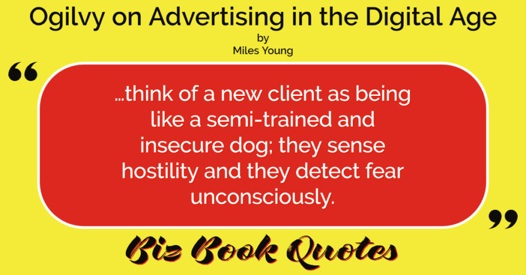 Quotes Quote: …think of a new client as being like a semi-trained and insecure dog; they sense hostility and they detect fear unconsciously.
