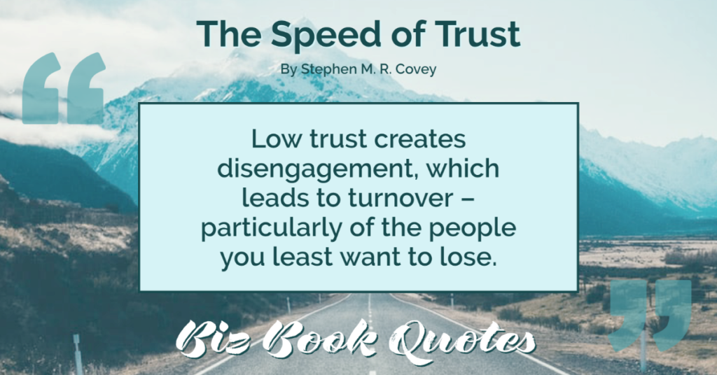 Quotes Quote: Low trust creates disengagement, which leads to turnover – particularly of the people you least want to lose.