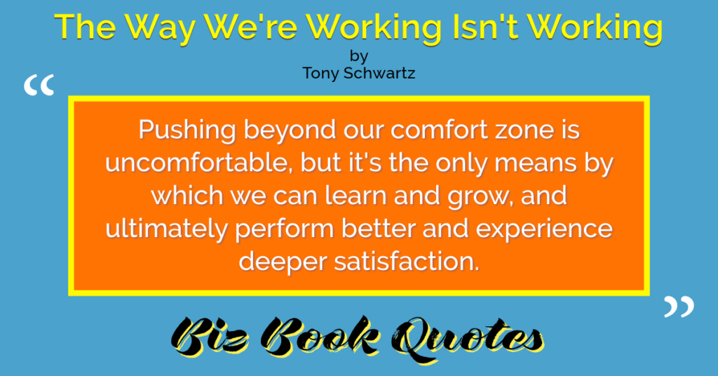 Quotes Quote: Pushing beyond our comfort zone is uncomfortable, but it’s the only means by which we can learn and grow, and ultimately perform better and experience deeper satisfaction.