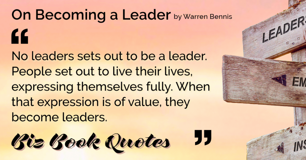 Quotes Quote: No leaders sets out to be a leader. People set out to live their lives, expressing themselves fully. When that expression is of value, they become leaders.