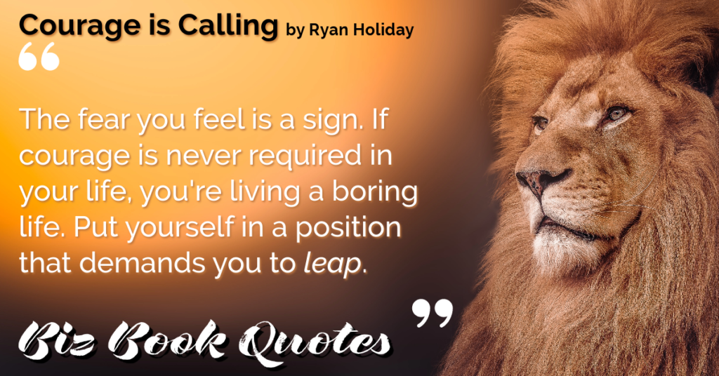 Quotes Quote: The fear you feel is a sign. If courage is never required in your life, you’re living a boring life. Put yourself in a position that demands you to leap.