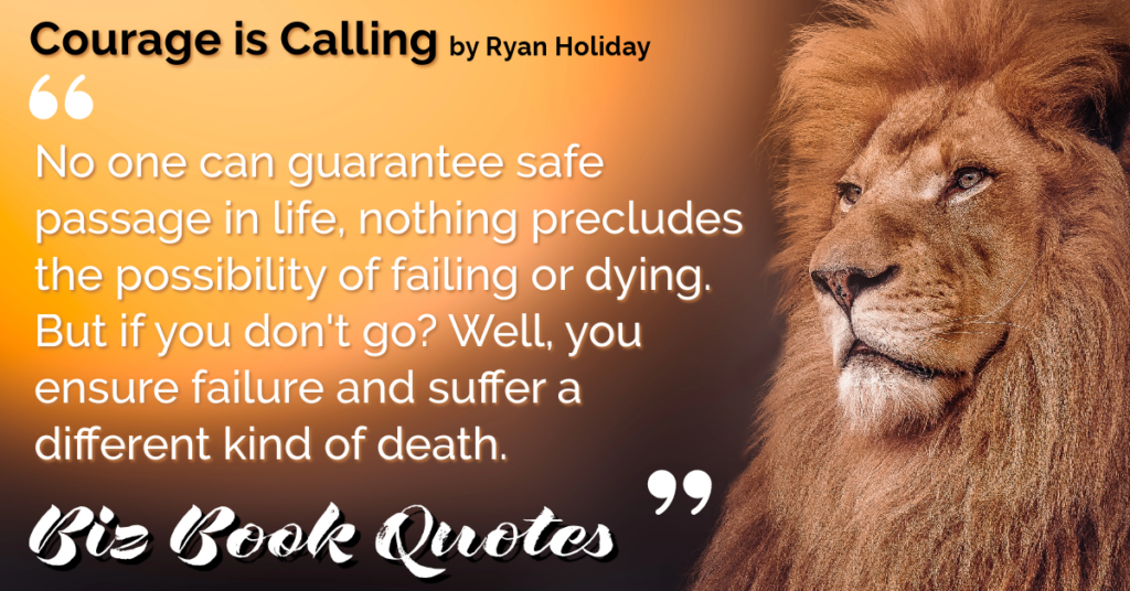Quotes Quote: No one can guarantee safe passage in life, nothing precludes the possibility of failing or dying. But if you don’t go? Well, you ensure failure and suffer a different kind of death.