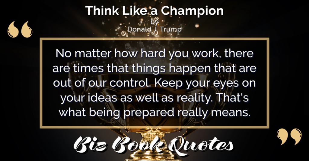Quotes Quote: No matter how hard you work, there are times that things happen that are out of our control. Keep your eyes on your ideas as well as reality. That’s what being prepared really means.