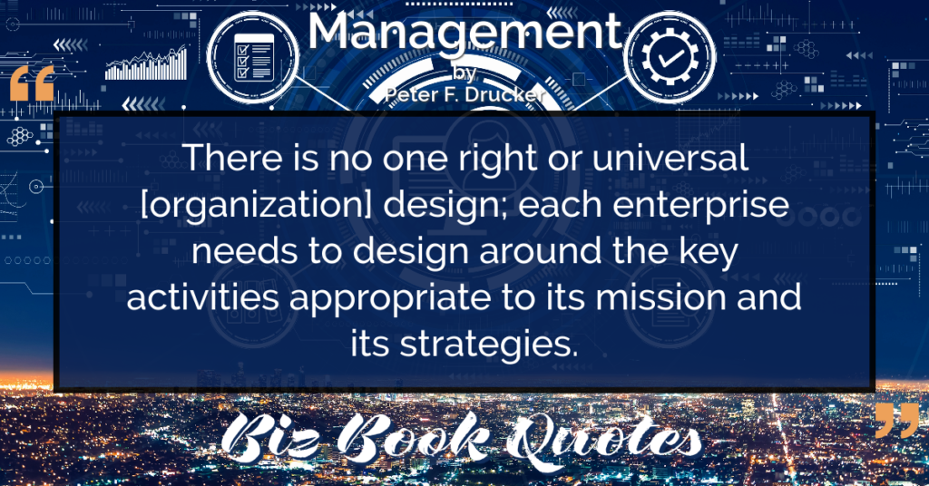 Quotes Quote: There is no one right or universal [organization] design; each enterprise needs to design around the key activities appropriate to its mission and its strategies.