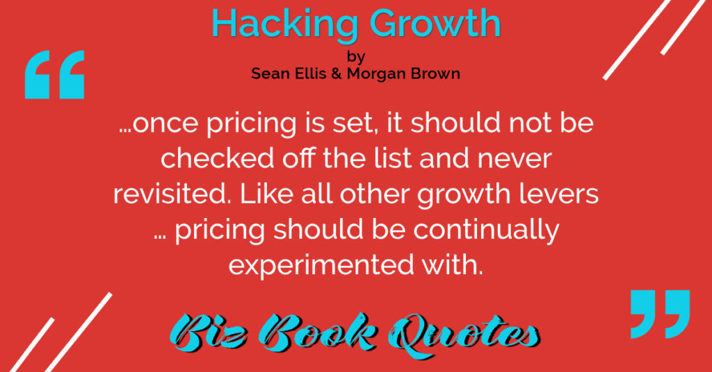 Quotes Quote: …once pricing is set, it should not be checked off the list and never revisited. Like all other growth levers… pricing should be continually experimented with.
