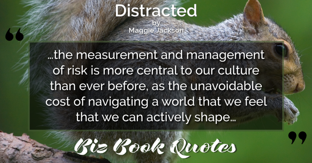Quotes Quote: …the measurement and management of risk is more central to our culture than ever before, as the unavoidable cost of navigating a world that we feel that we can actively shape…