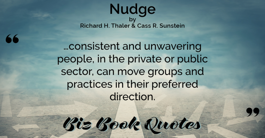 Quotes Quote: …consistent and unwavering people, in the private or public sector, can move groups and practices in their preferred direction.
