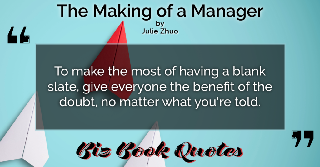 Quotes Quote: To make the most of having a blank slate, give everyone the benefit of the doubt, no matter what you’re told.