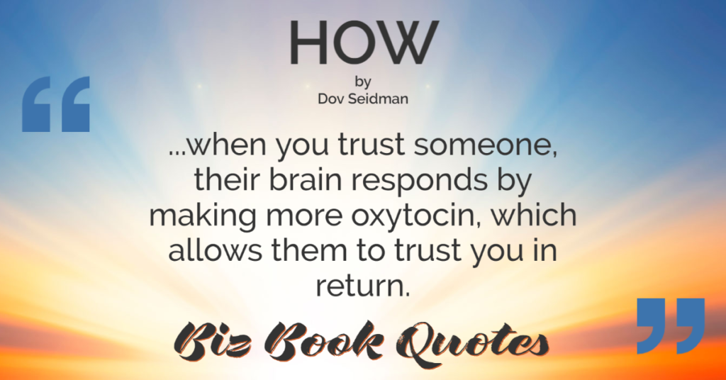 Quotes Quote: …when you trust someone, their brain responds by making more oxytocin, which allows them to trust you in return.