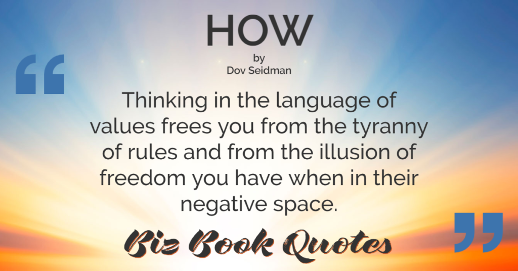 Quotes Quote: Thinking in the language of values frees you from the tyranny of rules and from the illusion of freedom you have when in their negative space.