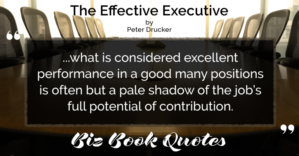 Quotes Quote: …what is considered excellent performance in a good many positions is often but a pale shadow of the job’s full potential of contribution.