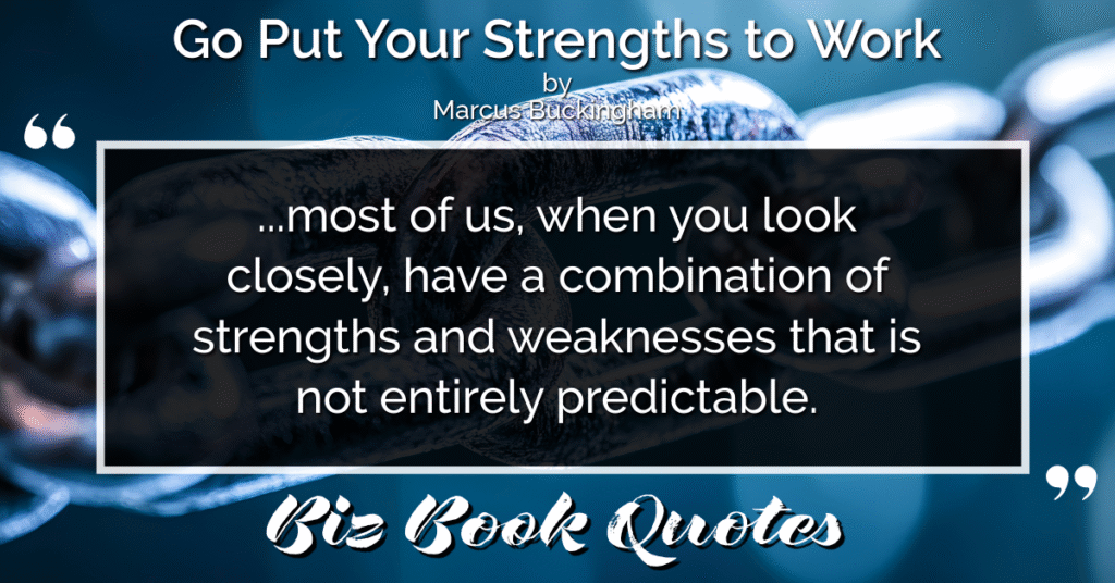 Quotes Quote: …most of us, when you look closely, have a combination of strengths and weaknesses that is not entirely predictable.