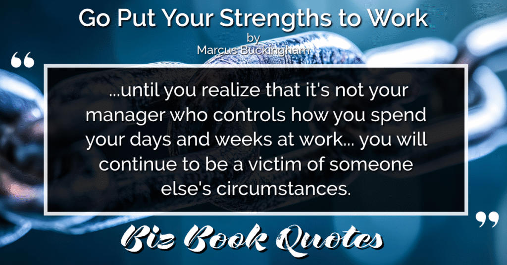 Quotes Quote: …until you realize that it’s not your manager who controls how you spend your days and weeks at work… you will continue to be a victim of someone else’s circumstances.