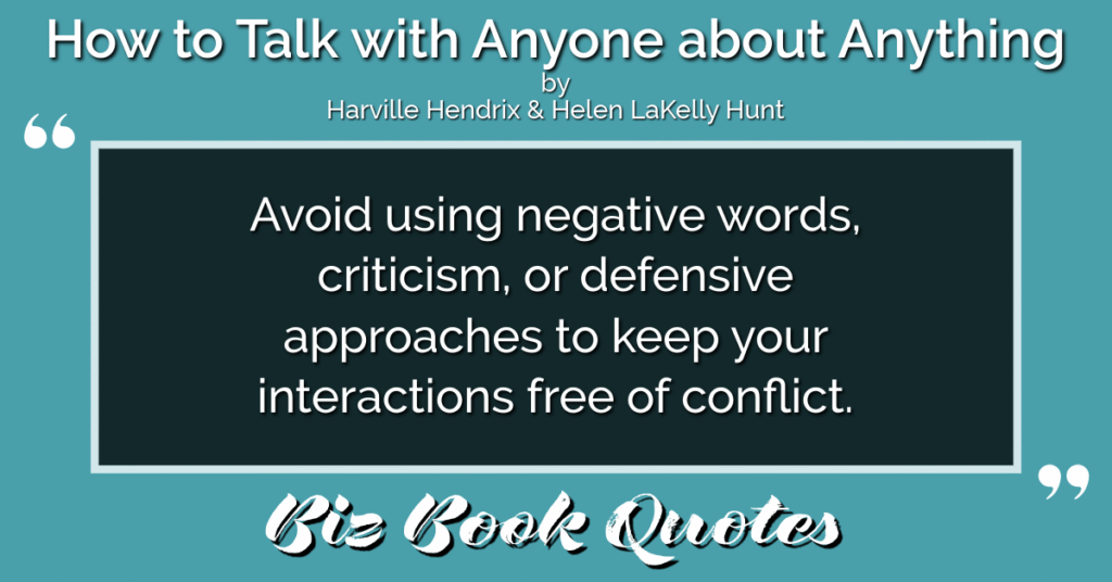 Quotes Quote: Avoid using negative words, criticism, or defensive approaches to keep your interactions free of conflict.