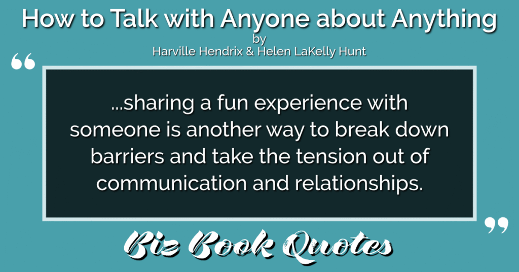 Quotes Quote: …sharing a fun experience with someone is another way to break down barriers and take the tension out of communication and relationships.