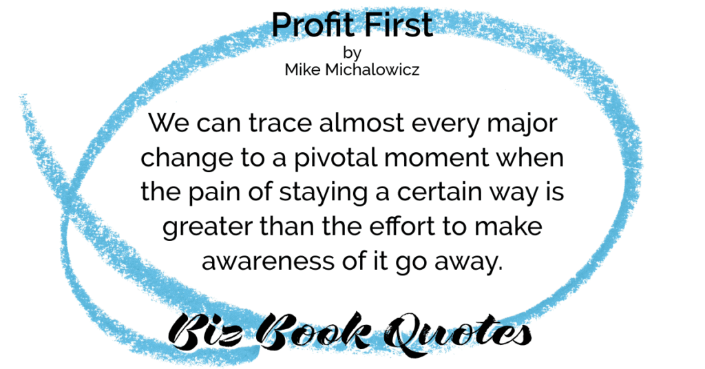 Quotes Quote: We can trace almost every major change to a pivotal moment when the pain of staying a certain way is greater than the effort to make awareness of it go away.