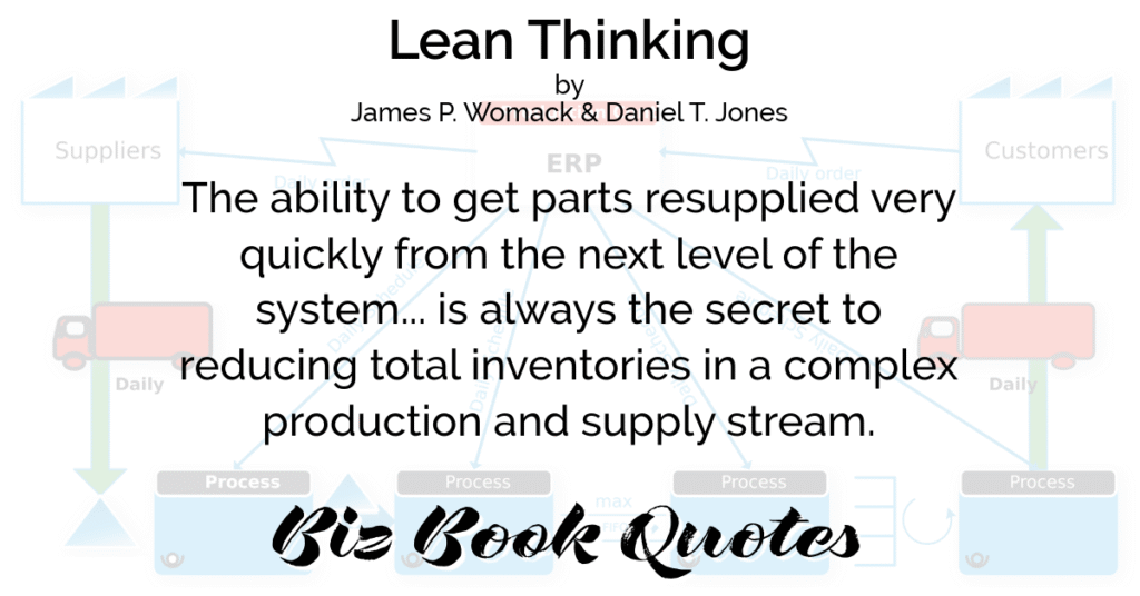 Quotes Quote: The ability to get parts resupplied very quickly from the next level of the system… is always the secret to reducing total inventories in a complex production and supply stream.