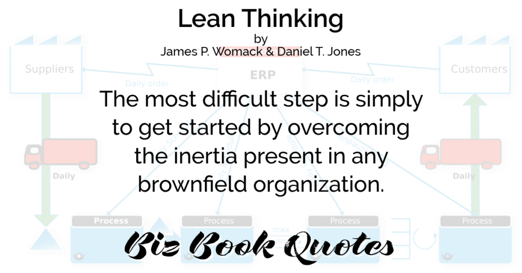 Quotes Quote: The most difficult step is simply to get started by overcoming the inertia present in any brownfield organization.