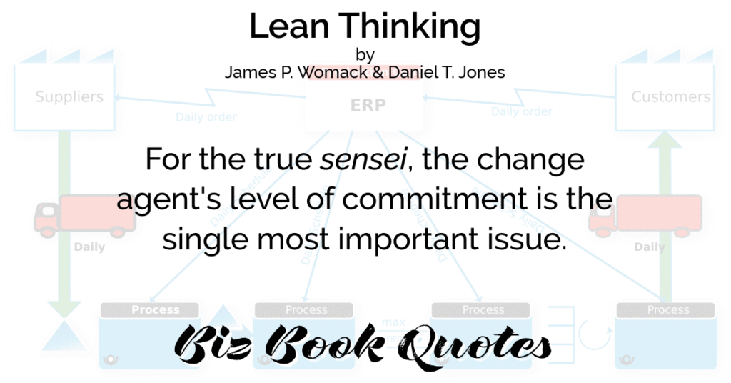Quotes Quote: For the true sensei, the change agent’s level of commitment is the single most important issue.