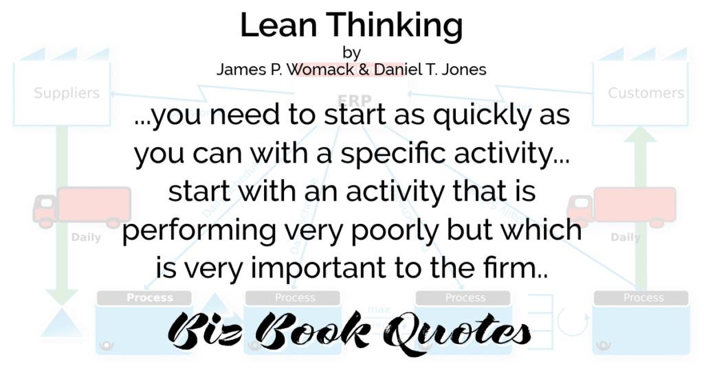 Quotes Quote: …you need to start as quickly as you can with a specific activity… start with an activity that is performing very poorly but which is very important to the firm..