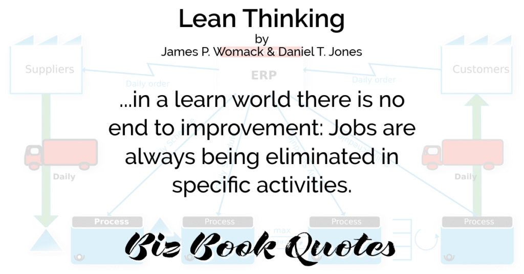 Quotes Quote: …in a learn world there is no end to improvement: Jobs are always being eliminated in specific activities.