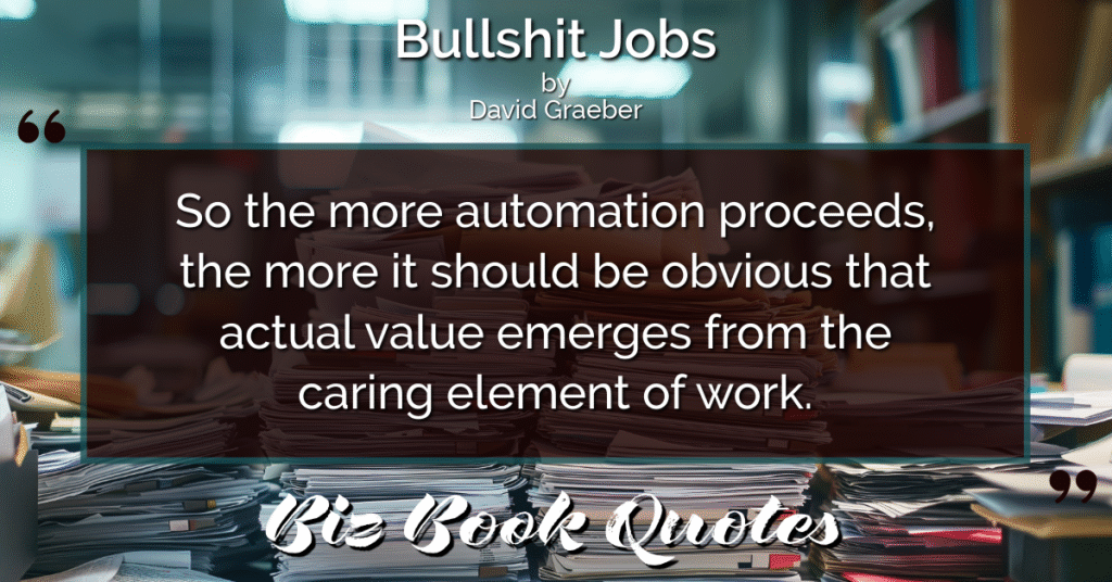 Quotes Quote: So the more automation proceeds, the more it should be obvious that actual value emerges from the caring element of work.