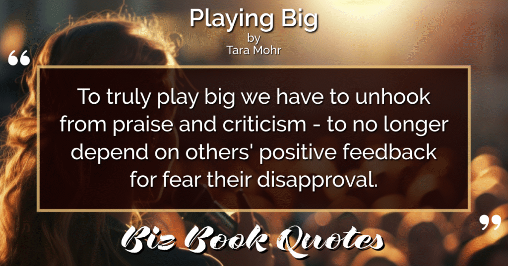 Quotes Quote: To truly play big we have to unhook from praise and criticism – to no longer depend on others’ positive feedback for fear their disapproval.