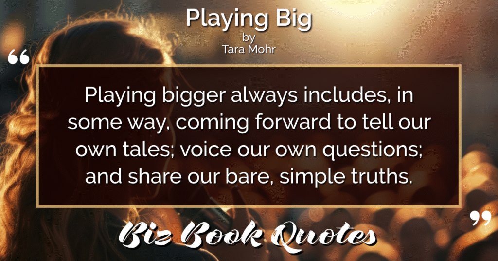 Quotes Quote: Playing bigger always includes, in some way, coming forward to tell our own tales; voice our own questions; and share our bare, simple truths.