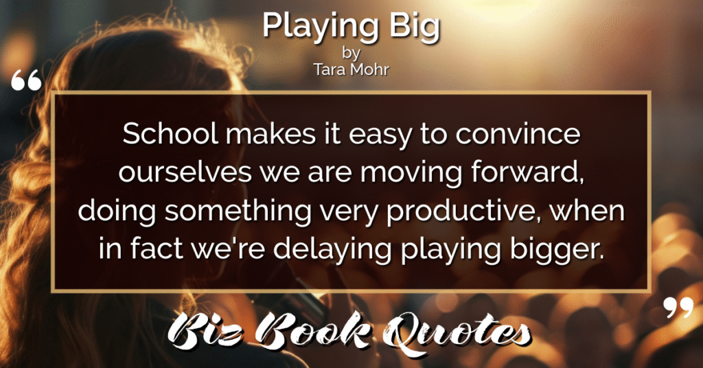 Quotes Quote: School makes it easy to convince ourselves we are moving forward, doing something very productive, when in fact we’re delaying playing bigger.