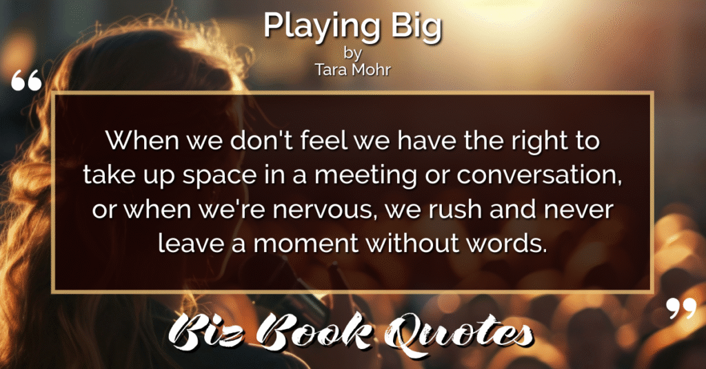 Quotes Quote: When we don’t feel we have the right to take up space in a meeting or conversation, or when we’re nervous, we rush and never leave a moment without words.