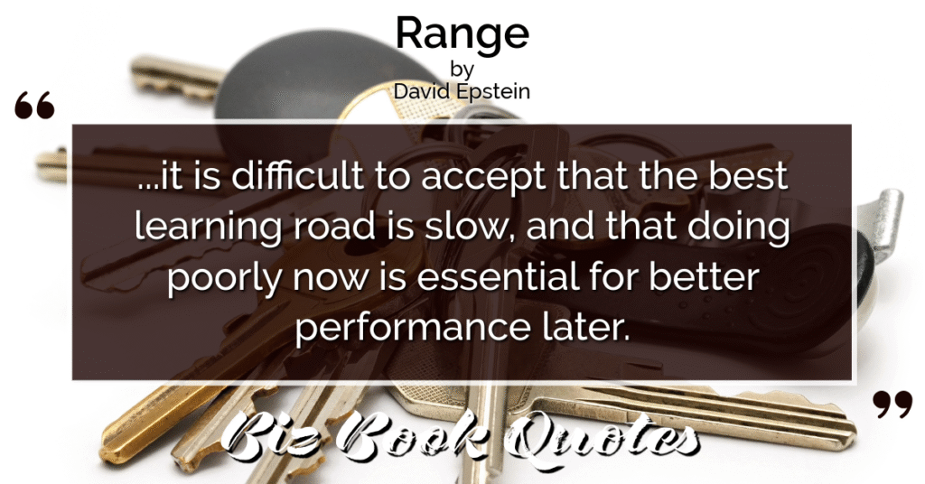 Quotes Quote: …it is difficult to accept that the best learning road is slow, and that doing poorly now is essential for better performance later.