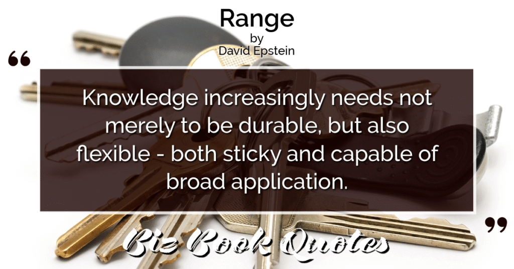 Quotes Quote: Knowledge increasingly needs not merely to be durable, but also flexible – both sticky and capable of broad application.