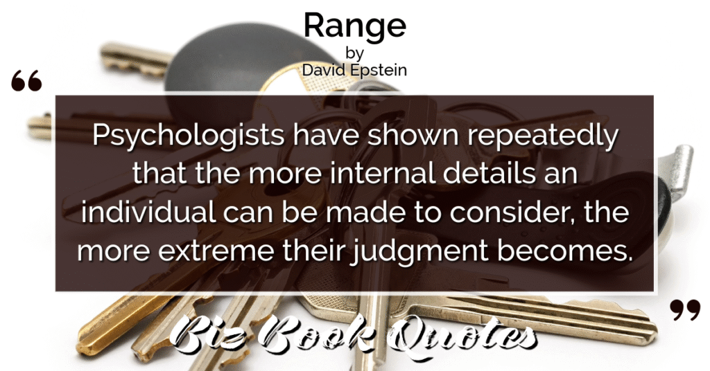 Quotes Quote: Psychologists have shown repeatedly that the more internal details an individual can be made to consider, the more extreme their judgment becomes.