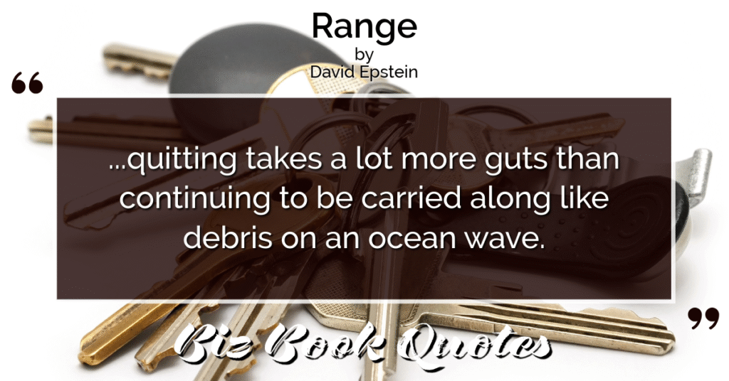 Quotes Quote: …quitting takes a lot more guts than continuing to be carried along like debris on an ocean wave.