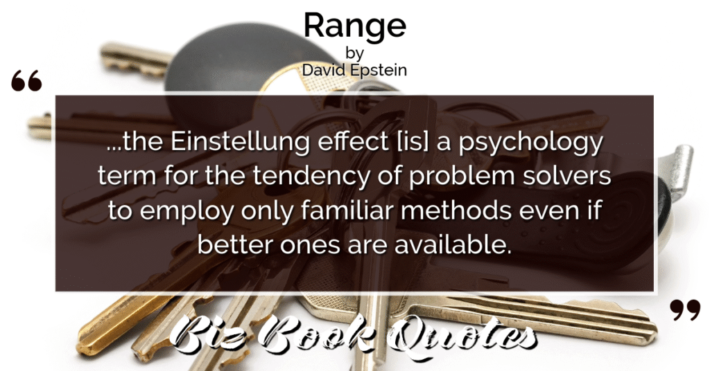 Quotes Quote: …the Einstellung effect [is] a psychology term for the tendency of problem solvers to employ only familiar methods even if better ones are available.