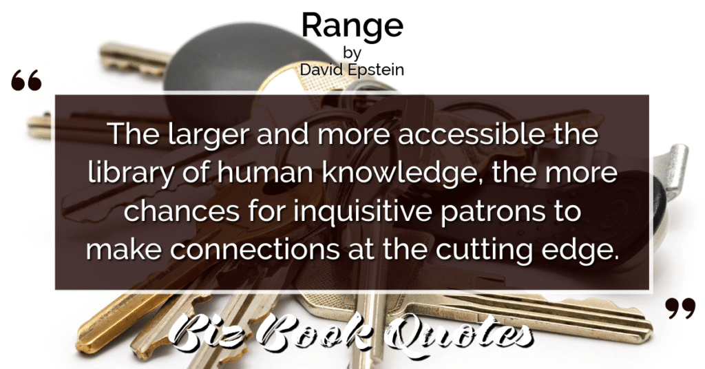 Quotes Quote: The larger and more accessible the library of human knowledge, the more chances for inquisitive patrons to make connections at the cutting edge.