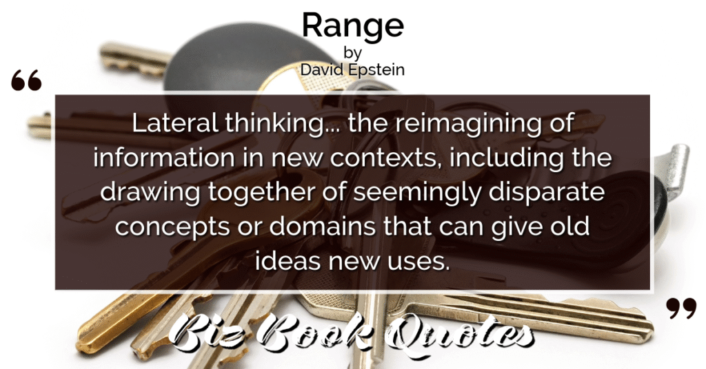 Quotes Quote: Lateral thinking… the reimagining of information in new contexts, including the drawing together of seemingly disparate concepts or domains that can give old ideas new uses.