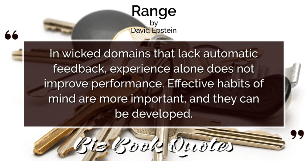 Quotes Quote: In wicked domains that lack automatic feedback, experience alone does not improve performance. Effective habits of mind are more important, and they can be developed.